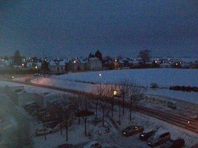 Dans la soirée, il a encore neigé et à gros flocons... On voit pas super, mais on peut voir les gros flocons :D